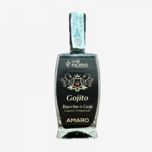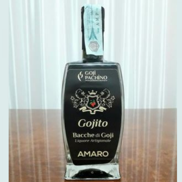 From twenty years of experience in the field of cultivation of vegetable species, it wanted to bring a crop innovation with the production and transformation of the highly prized "Goji Berries", creating the Goji Pachino brand. • Gojito amaro is created with goji berries from our Sicilian production and 9 other natural flavors. • It has an intense aroma, black green color, slightly spicy flavor, it is used above all as a digestive after a lunch or dinner, it has a very high antioxidant value, alcohol content 25% vol. • Rosolio liqueur is created only with goji berries, intense aroma of wild berries, orange color, purely goji berry flavor, it can be used as a digestive, or after a dessert, but above all to make cocktails, alcohol content 30% vol. it has a very high antioxidant value.