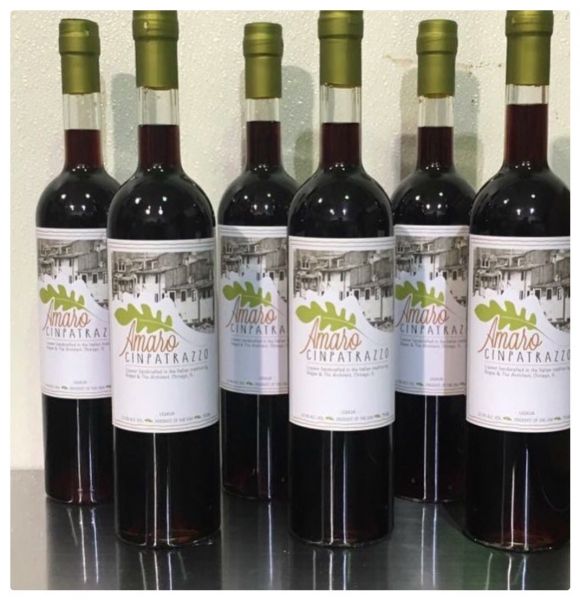 We are Amaro Cinpatrazzo --an award-winning, small batch Amaro made in Chicago. It is respective of the style of amari in Southern Italy - traditionally herbal and vegetal - it has a balanced flavor profile - front, back and middle of the mouth flavors followed by a soft bitter finish. We use fresh, hydroponically grown arugula, sage and mint along with other dried botanicals (primarily organic), hazelnut, vanilla bean, coffee bean and Seville orange peel. We use honey in our simple syrup. There are a total of nineteen ingredients used in its production. We do not use any processed sugar, artificial sweeteners or caramel coloring. The mouth feel is clean and light, with a smooth, long finish. The flavors are well blended yet distinct; the bitters are soft and the honey simple syrup is not cloying.