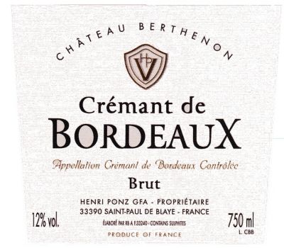 CREMANT DE BORDEAUX WHITE CHATEAU BERTHENON 87 POINTS TASTINGS.COM SILVER MEDAL