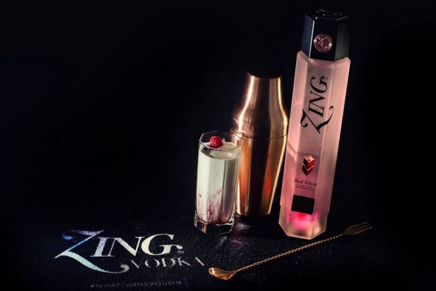ZING Vodka was born in America (Rochester, New York) from a blend of corn and wheat. It is quadruple-distilled in a state-of-the-art column still, after which it is subjected to rigorous filtration to ensure essential purity. The vodka is then bottled at 80 proof (40% alcohol by volume) If you\'re tired of austere vodkas without character or personality, ZING Vodka is a refreshing change of pace. ZING Vodka has a discernible set of aromatics. It is a super-premium vodka unparalleled in smoothness. The unique bottle design boasts sophisticated LED technology that illuminates the bottle with just one touch. The LED light in the bottle reinforces ZING Vodka\'s underlying message of excitement and opulence, turning ordinary moments into extraordinary ones. In addition to the LED light embedded at the base of the bottle, ZING\'s high energy brand is reinforced through its unique hexagonal shaped bottle, which features high end chrome accents. This stand-out design captures attention at restaurants and bars, and adds a wow factor to private events and celebrations. ZING Red Velvet is exactly what it sounds like - a delicious liquid version of this classic confection. The crystal clear vodka has a lightweight body and a cherry and vanilla nose with light cocoa notes. It immediately bathes the palate with the flavor of red velvet cake plus a welcome 70-proof zing on the finish. ZING Red Velvet embodies the ultimate indulgent drinking experience, combining super premium vodka with the rich taste of red velvet. ZING Vodka is available in a 750mL for both the regular ZING Super Premium Vodka and ZING Red Velvet.