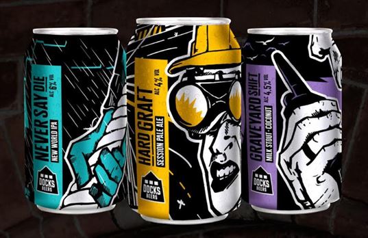 Docks Beers Director Will Douglas said, “Today is a proud day for the team. It is the culmination of two years of hard graft. Our plans for brewing craft beers in cans at a new Grimsby brewery go back to 2016. Since then we have been getting the brewery up and running, trialing brews to make sure that the first three beers are the highest quality, and getting designs perfected for the cans. We’ve finally got the recipes just right and we’re as excited about the beers inside the cans as we are about the artwork on the outside. Source Four’s illustrations capture perfectly the spirit of Docks Beers – putting the graft in craft beer. We believe we are the first brewery in Lincolnshire to produce cans for the craft beer market. They show that Grimsby and Lincolnshire can compete with the best of the UK’s craft breweries.”